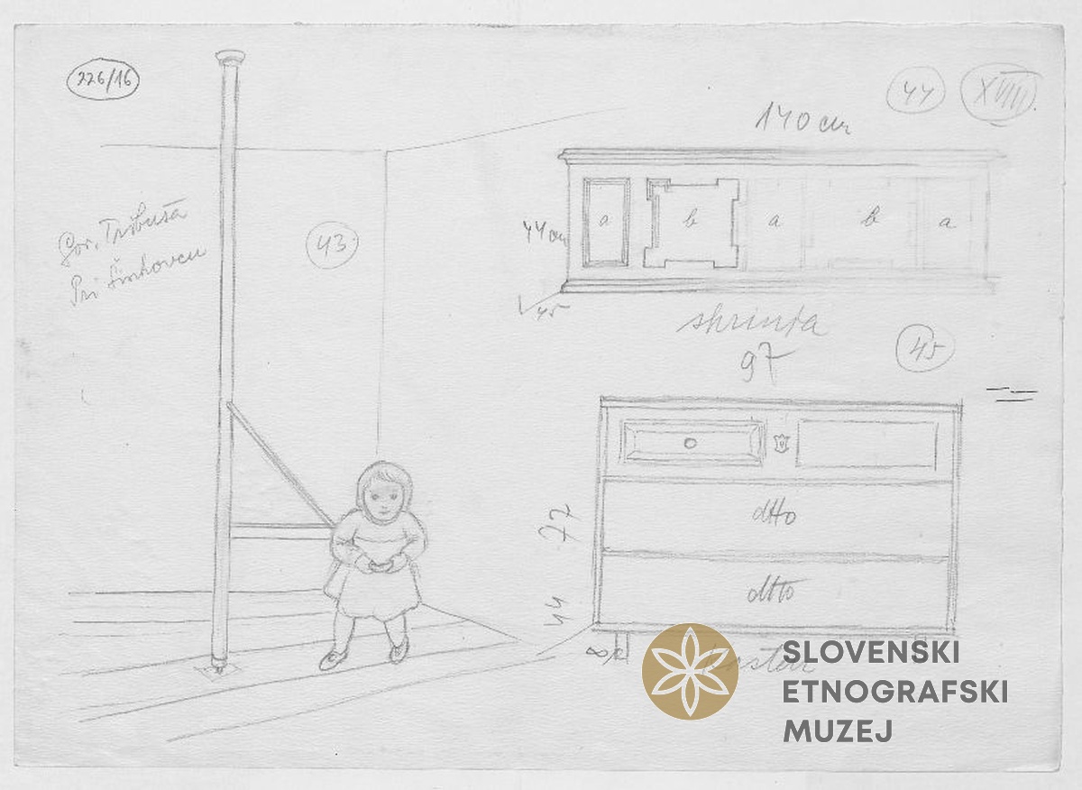 Priprava za učenje hoje otrok, skrinja, kosten (predalnik), Gorenja Trebuša, pri Šinkovcu.