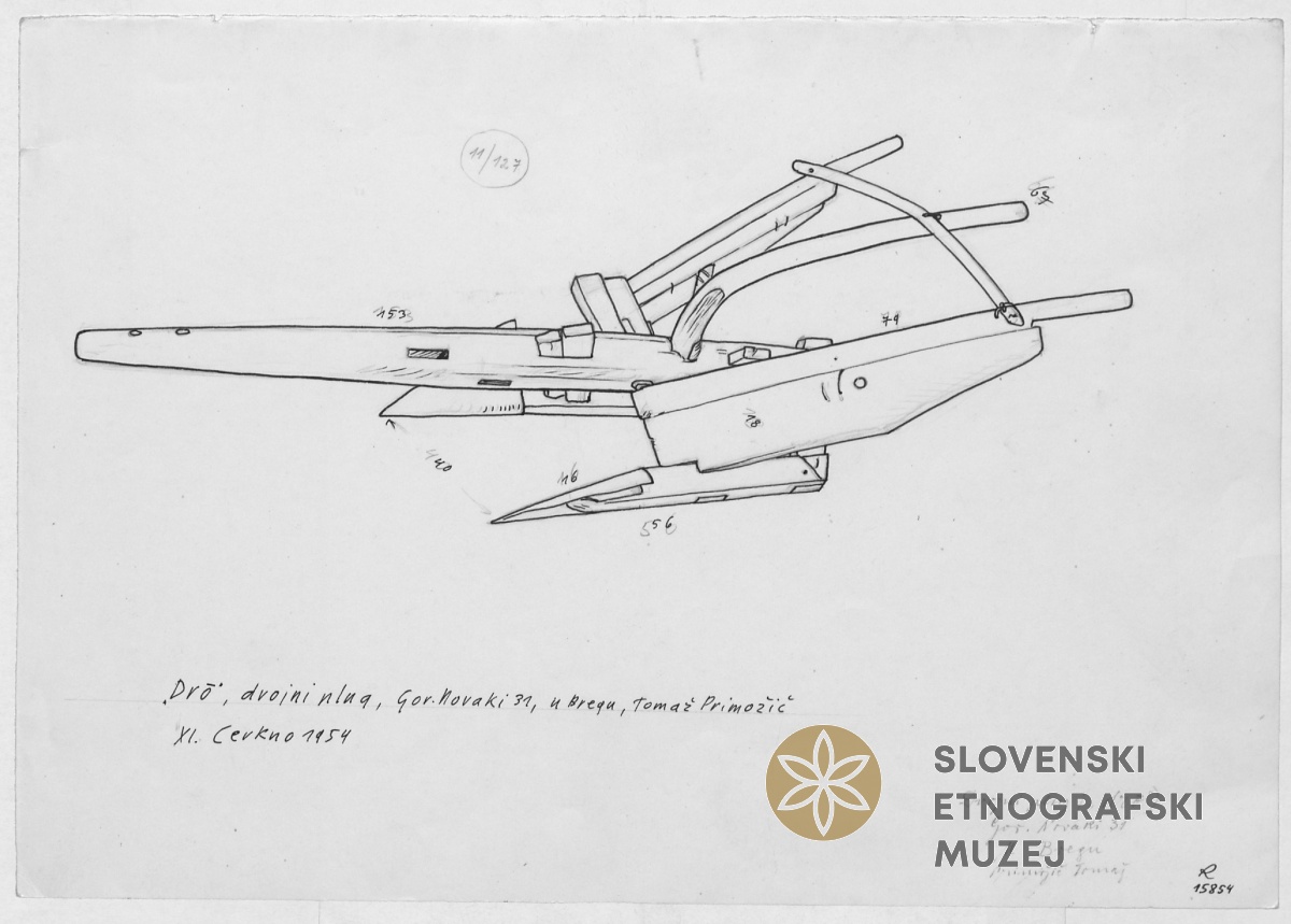 Dvojni plug ("dro"). Lastnik Tomaž Primožič - u Bregu, Gorenji Novaki 31...