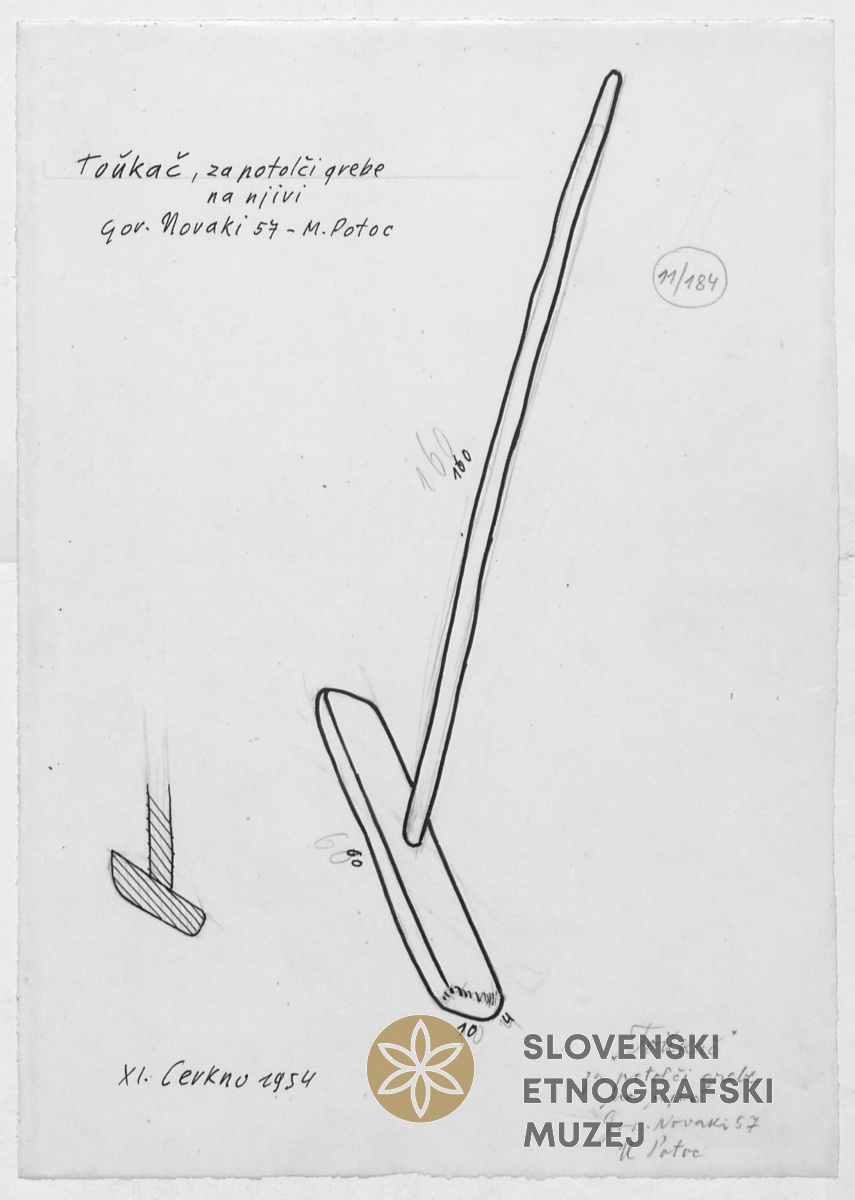 "Toukač" za tolčenje grebe na njivi. Lastnik M. Potoc, Gorenji Novaki 57...