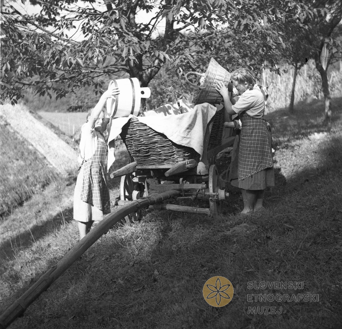 Grozdje sipljejo v koš, Glavičevi iz Hrastovega Dola. Teren 5- Št. Vid pri Stični, Radohova vas,...