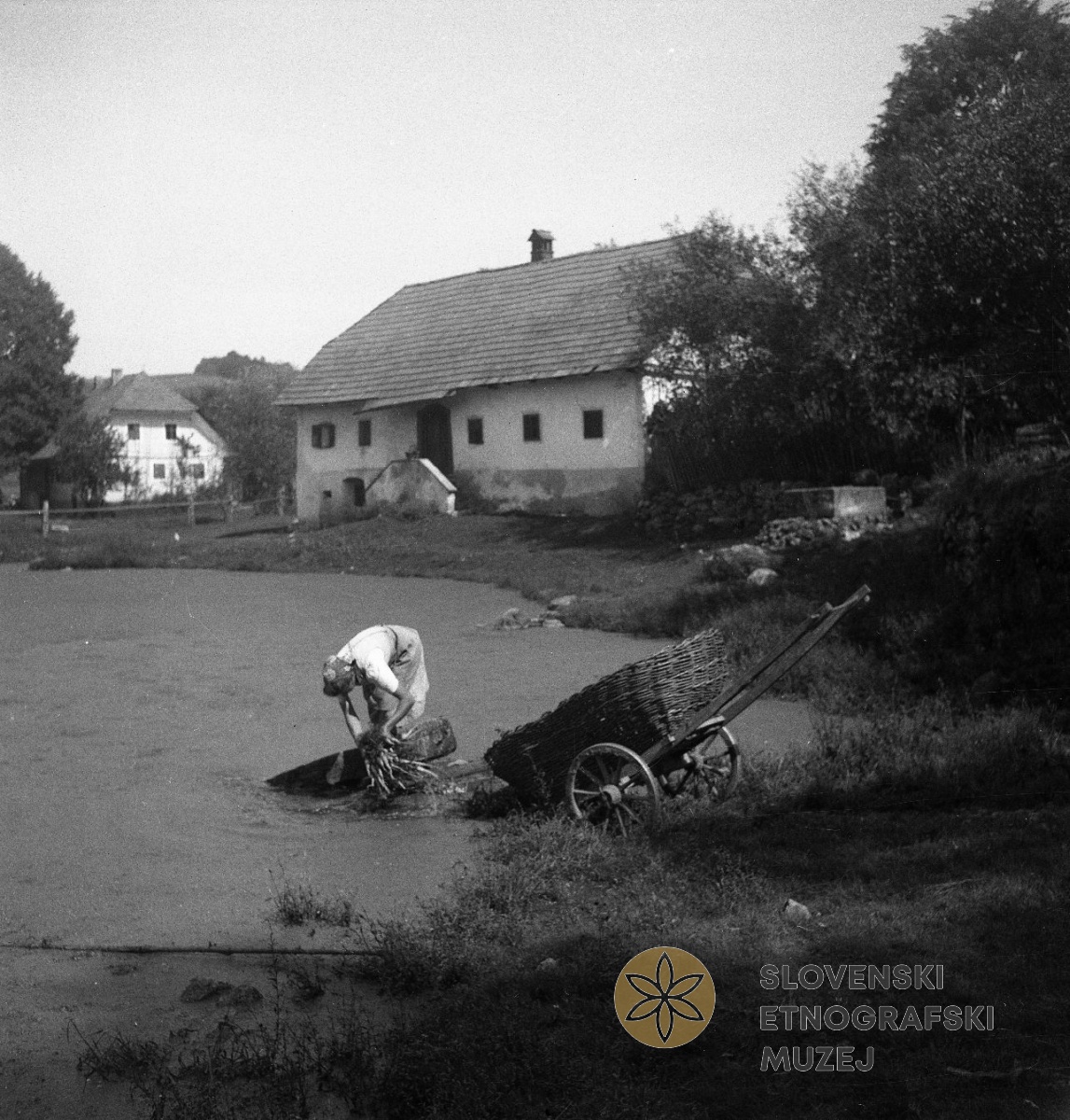 V korbi (košari) nese lečo, Hrastov Dol. Teren 5- Št. Vid pri Stični, Radohova vas, Dob-OLO...