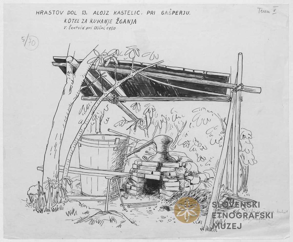 Kotel za kuhanje žganja. Lastnik Alojz Kastelic - pri Gašperju, Hrastov Dol 13.