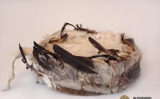 Kapa, veliko okroglo, na rešetu delano pokrivalo oblečeno zgoraj in na obodu v zajčjo kožo, ob robu...