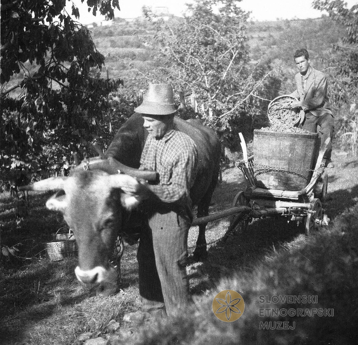 Grozdje nosijo v brentah in zejčih (Kumarjev oče in sin iz Imenja 21). Teren 10- Goriška Brda (31.7...