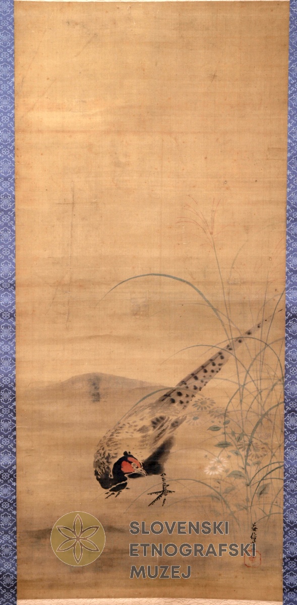 Slika "Fazan" s tušem in barvo na svitku . Slika je del triptiha (treh podobnih slik na...