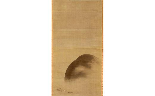 Pokrajina. Okrogla slika na svitku, tuš na papirju. "Vrhovi gora štrlijo nad oblaki"...