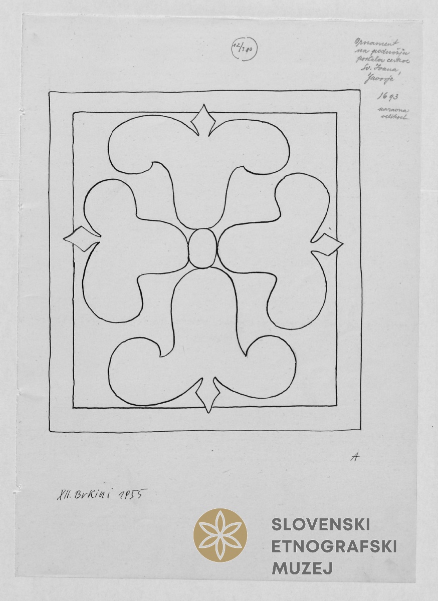 Ornament na podnožju portala cerkve Sv. Ivana, Javorje, 1693.
