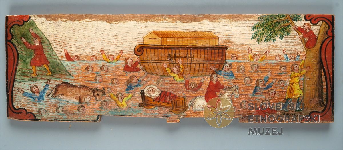 Jezus pomiri vihar na Galilejskem jezeru. Končnico je leta 1911 muzeju podaril Primož Žontar,...