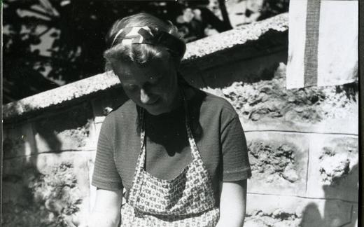 Hilda Kozak pripravlja hrano na terasi. V: album VII.A.