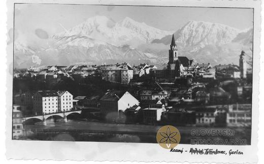 Kranj. Na razglednici Kočna, Grintovec, Greben. Med leti 1928 in 1947.
