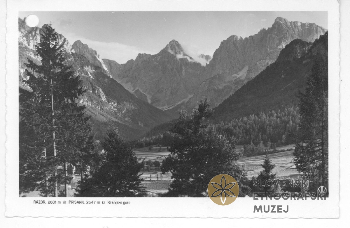 Kranjska Gora. Na razglednici Razor (2601m) in Prisank (2547m) iz Kranjske Gore. Med leti 1928 in...