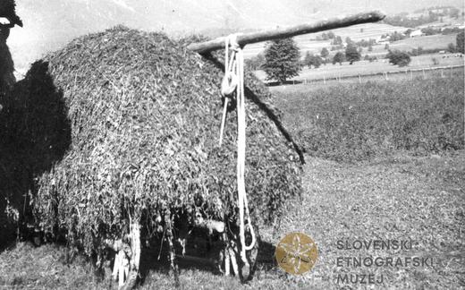 Žrd pri senenem vozu, nategnjena s "klobaso". Iz fototeke študentskih ekip. Pridobljeno...