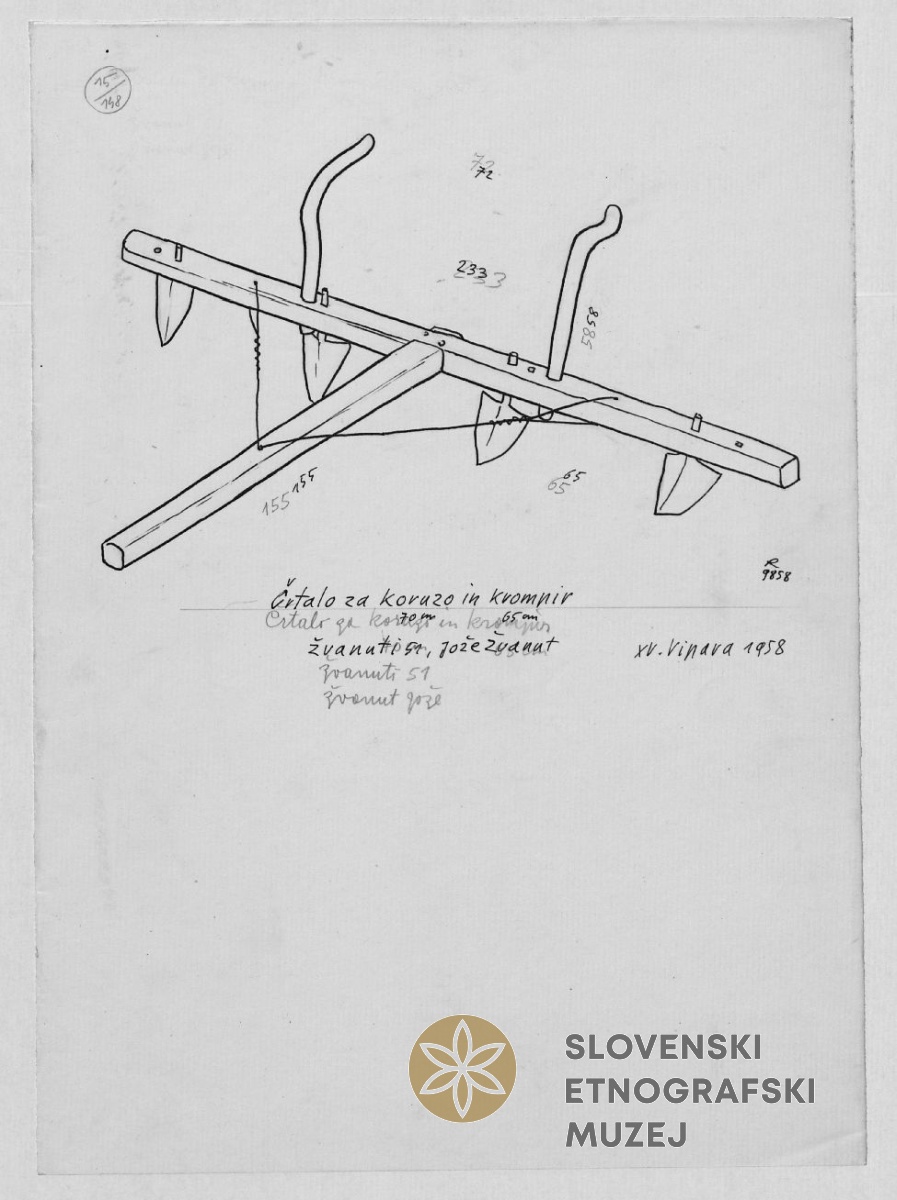 Črtalo za koruzo in krompir. Lastnik Jože Žvanut, nekdaj Žvanuti 51.
