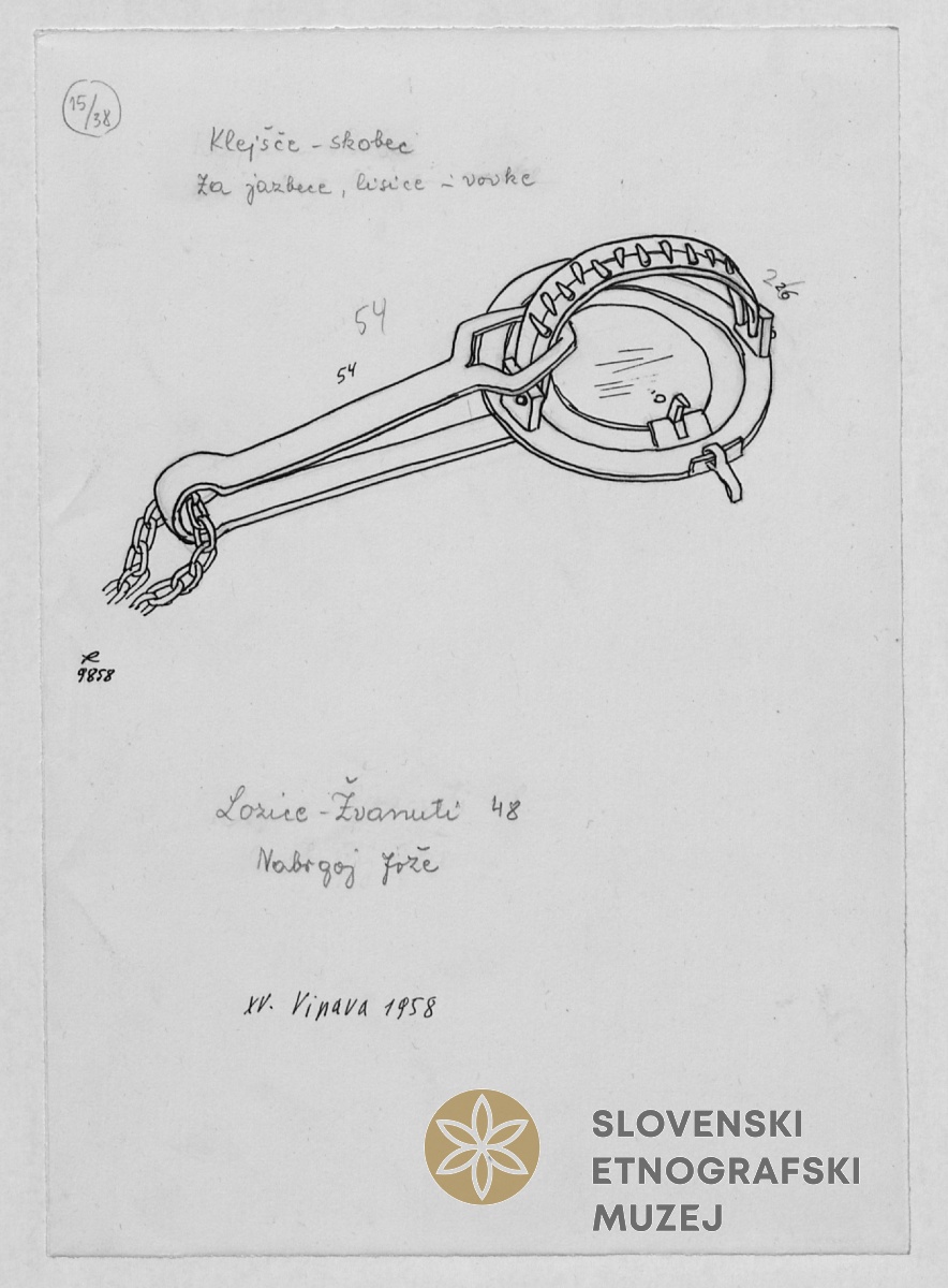 Klejšče, skobec. Past za jazbece, lisice, volke, ... Lastnik Jože Nabergoj, nekdaj Žvanuti 48.