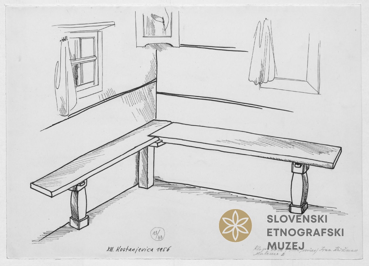 Šije nad ognjiščem v hiši (veži), Ivan Križman, Malence 2. Teren 13- Kostanjevica (1.-31.8.1956).