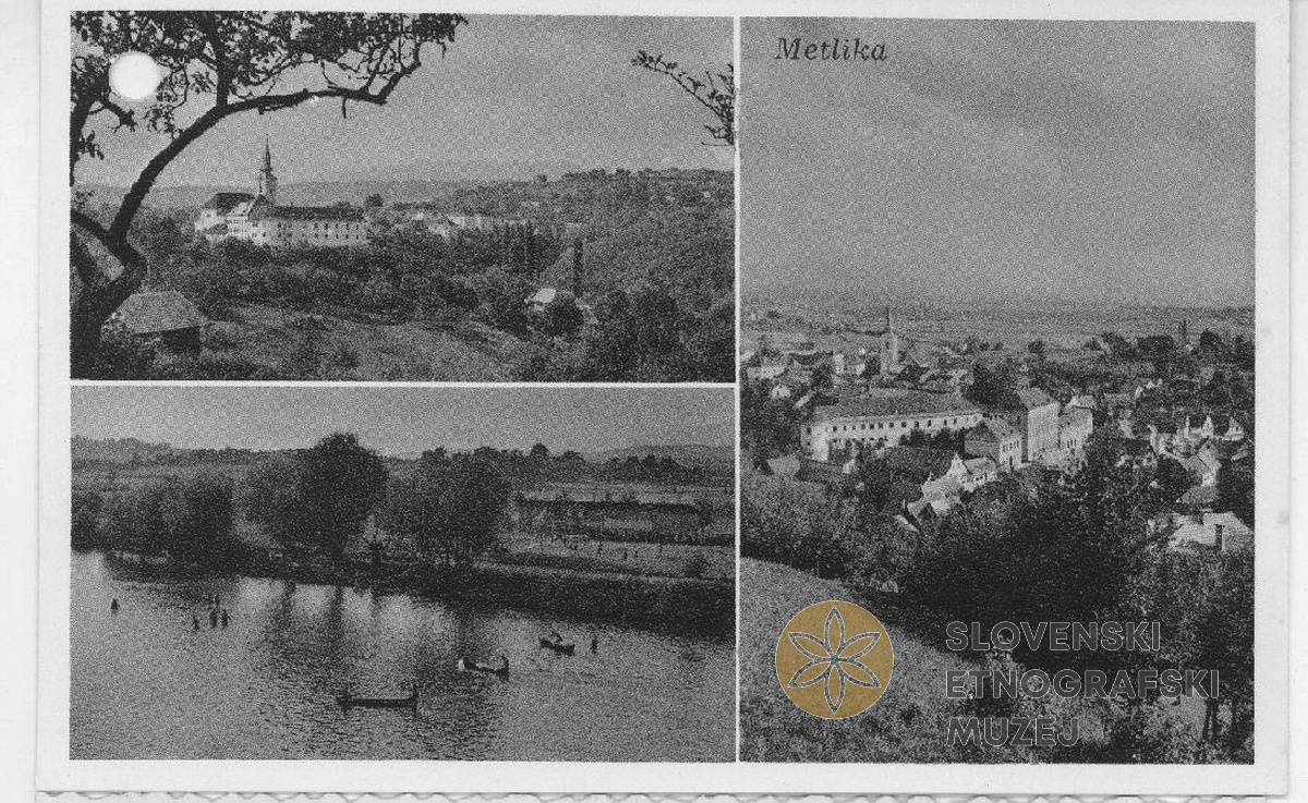 Metlika. Na razglednici kopališče na Kolpi. Med leti 1928 in 1947.