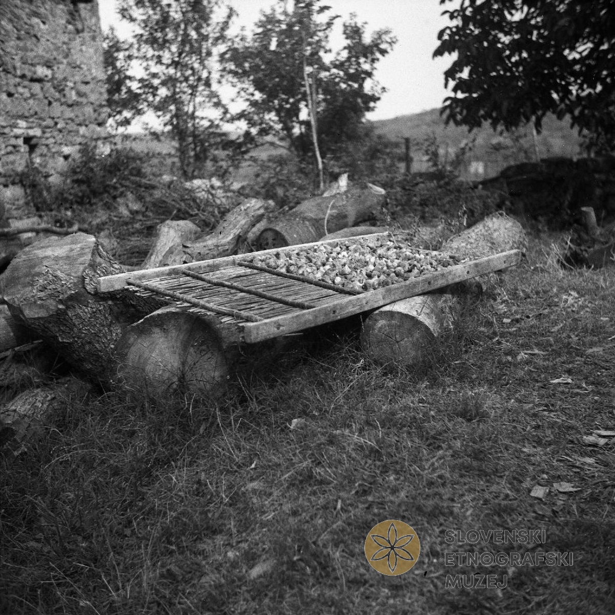 Fige sušijo na piconu, postavljenem na "roštu", Mrtnjak, pri Muščevih. Teren 10- Goriška...