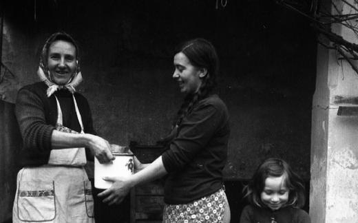 Medsebojna pomoč vaščanov - nese hrano in praške, Nedelica. Teren I - Koroška, Štajerska, Prekmurje.