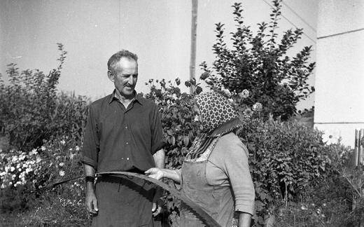Medsebojna pomoč - posojanje žage sosedu, Nedelica. Teren I - Koroška, Štajerska, Prekmurje.