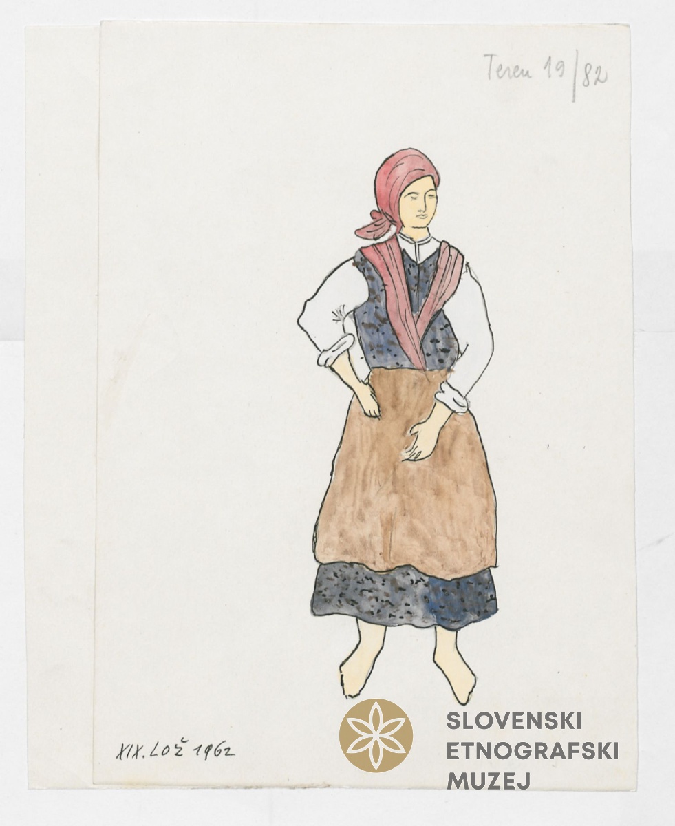 Rekonstrukcija ljudske ženske noše konec 19. stoletja in začetka 20. stoletja. Loška dolina.