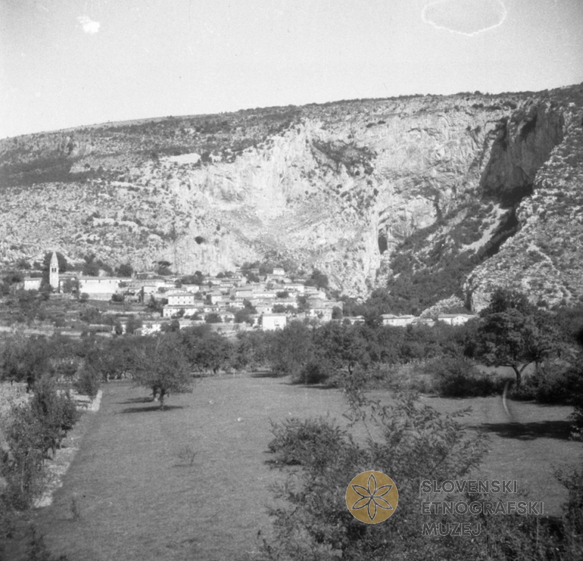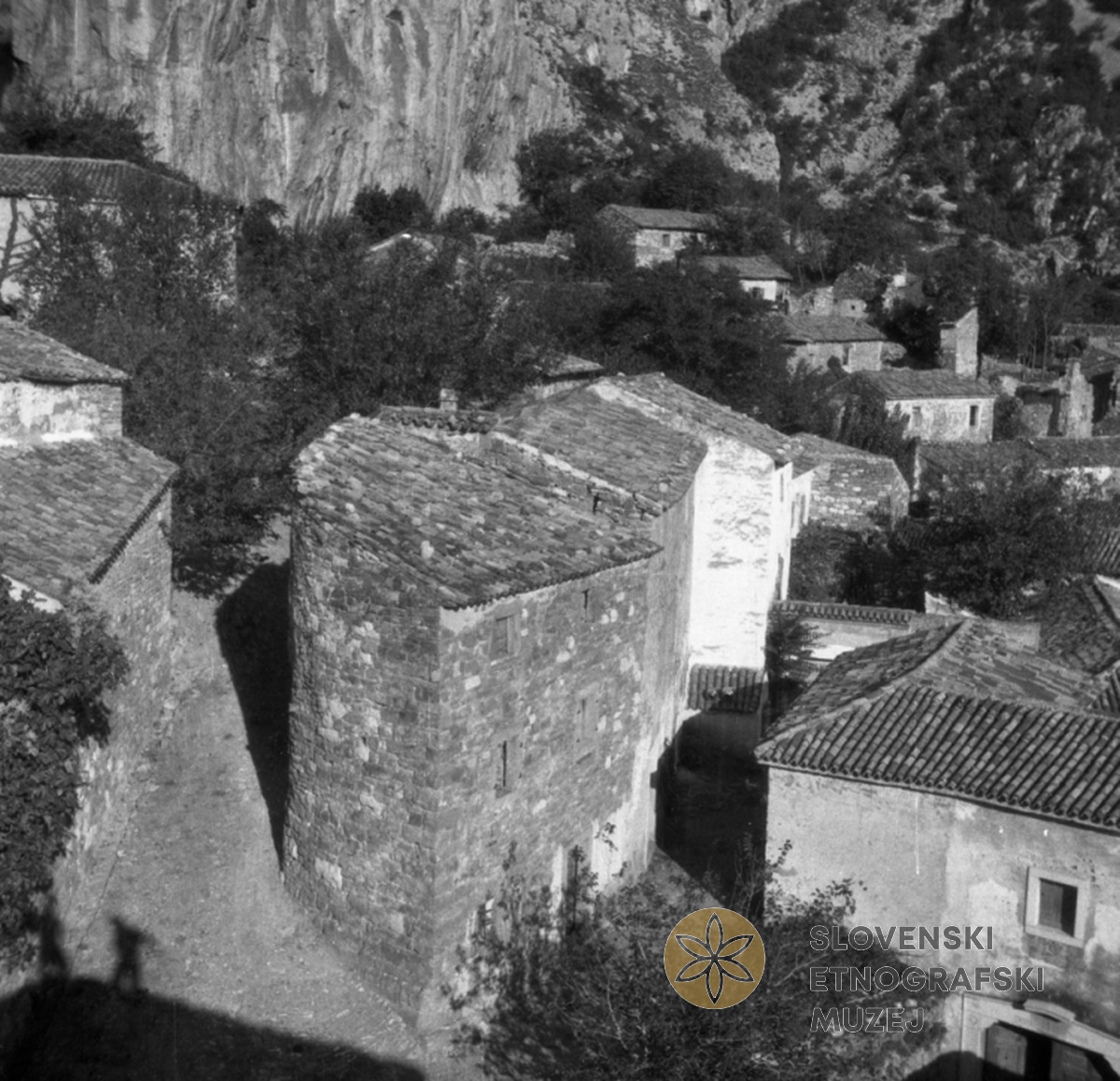 Lulčevo poslopje na križanju dveh poti v Ospu (posnetek s cerkvene strehe). Teren 3 - Področje med...