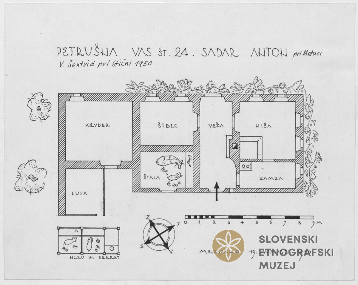 Tloris hiše. Lastnik Anton Sadar - pri Metuci, Petrušna vas 24.
