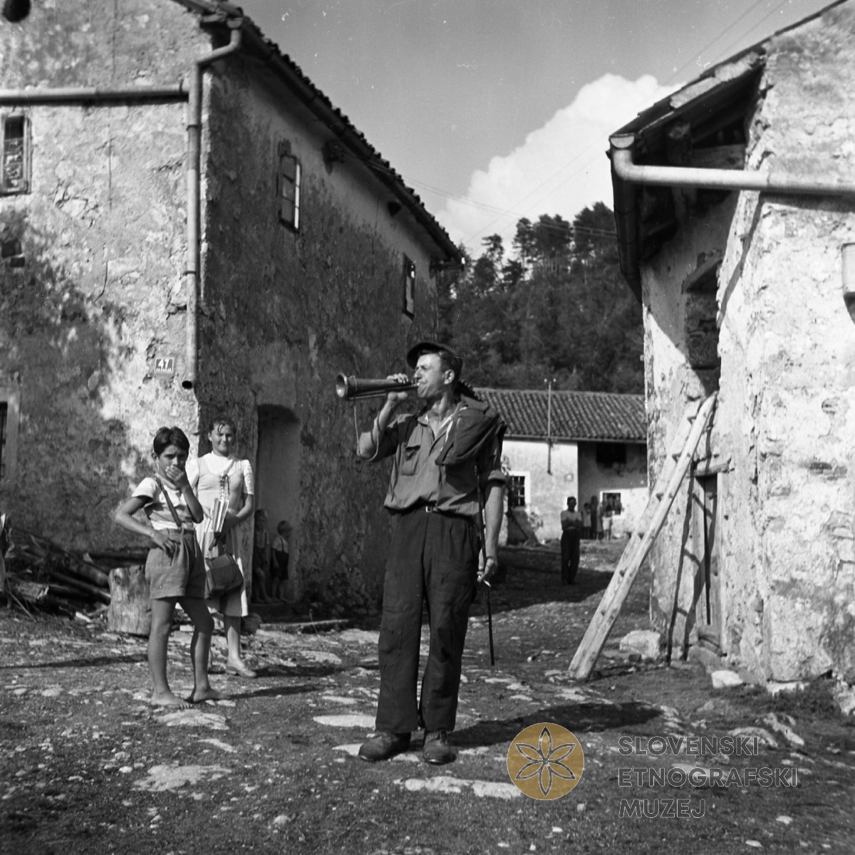 Kraviar kliče živino za na pašo, Podgrad. Teren 12- Brkini, posneto v času terenskega dela od 1.-31...