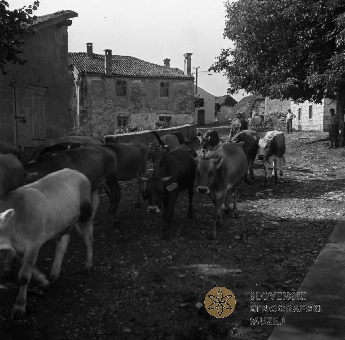 Krave gredo na pašo, Podgrad. Teren 12- Brkini, posneto v času terenskega dela od 1.-31.VIII.1955.