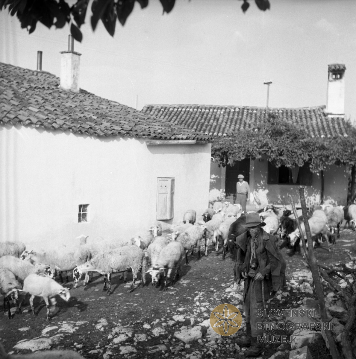 Ovčar žene ovce na pašo. Podgrad. Teren 12- Brkini, posneto v času terenskega dela od 1.-31.VIII...