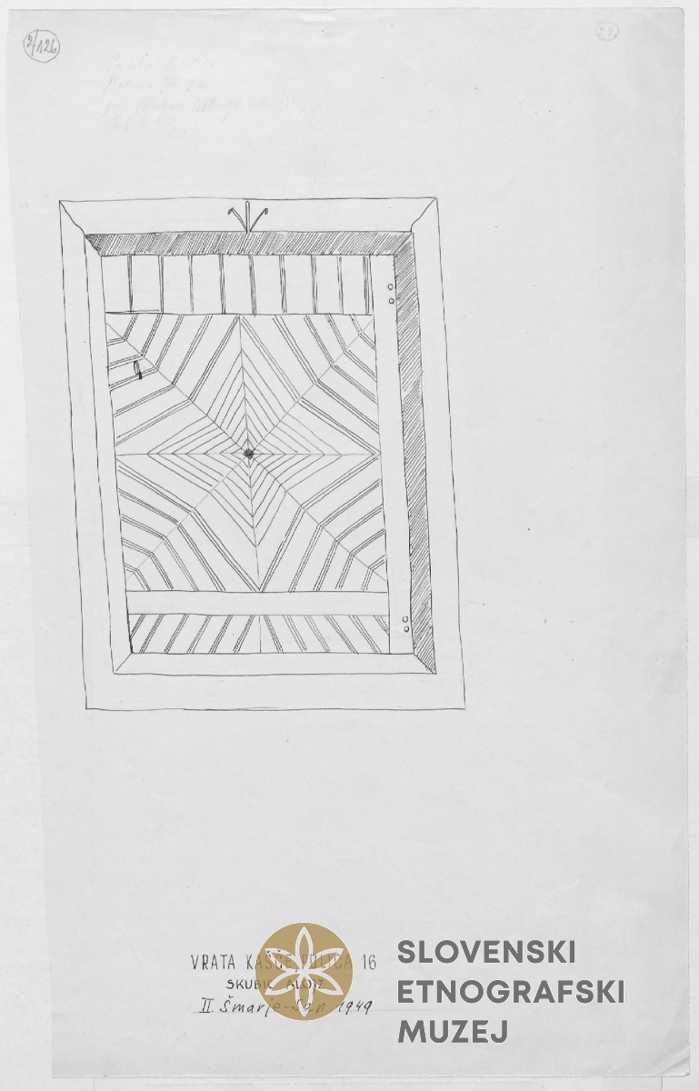 Vrata, detajl. Lastnik Franc Vidic, pri Primci, Polica 3.