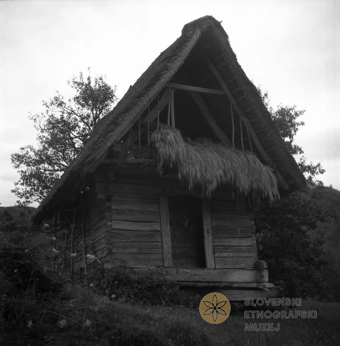 Štala (hlev), zgornji del lesen, Police. Teren 11- Cerkljansko (30.7.-1.9.1954).