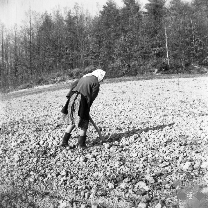 Prešna Loka, pobiranje krompirja na njivi. Teren I - Koroška, Štajerska, Prekmurje.