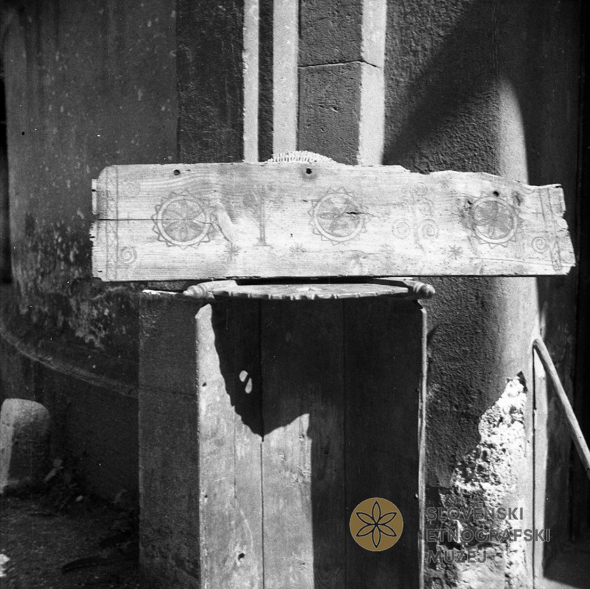 Stranica briške zibke (zibelke) z ornamentom, last EM. Teren 10- Goriška Brda (31.7.-31.8.1953).