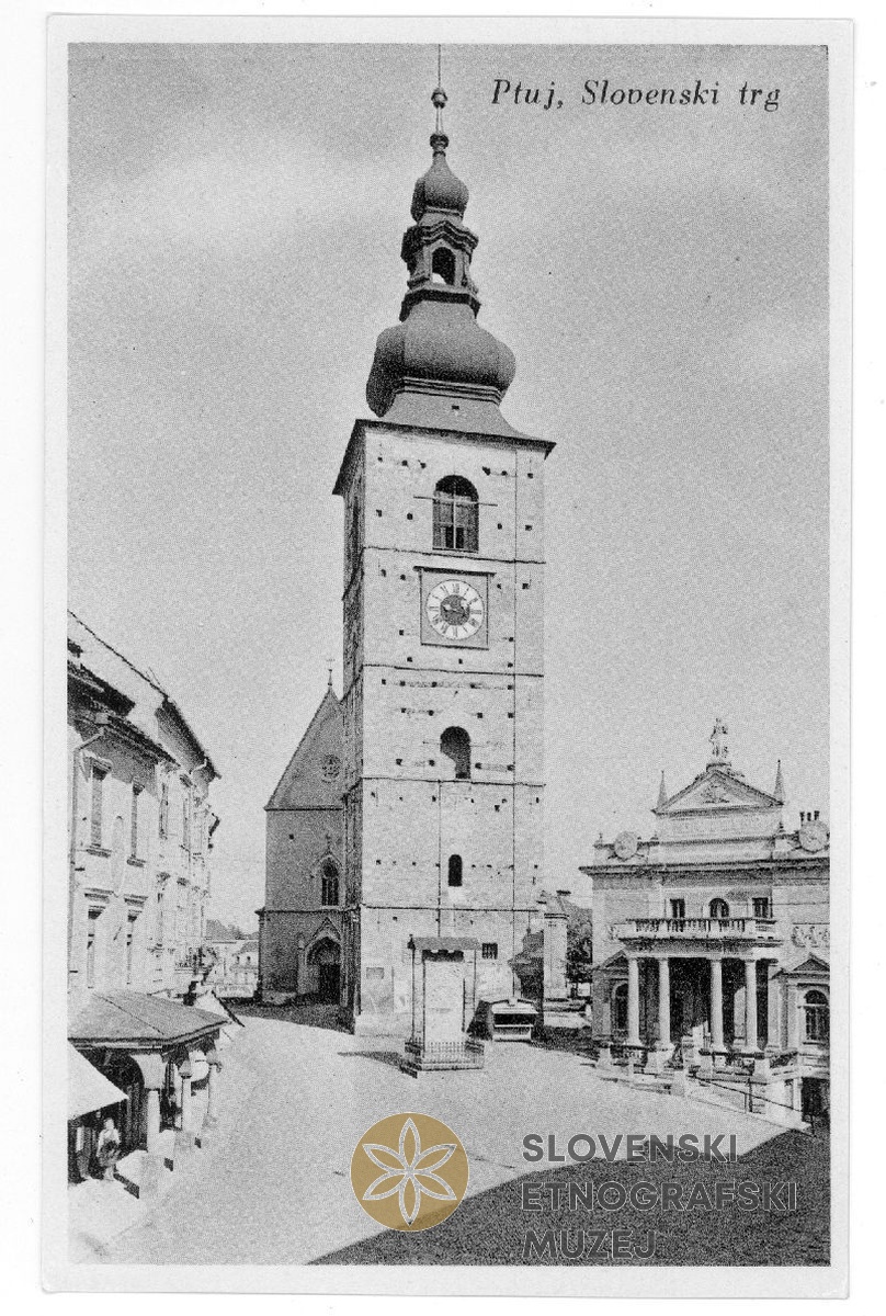 Mestni stolp in Mestno gledališče na Slovenskem trgu na Ptuju.
