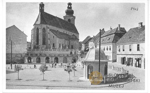 Minoritski trg z Marijinim stebrom na Ptuju.