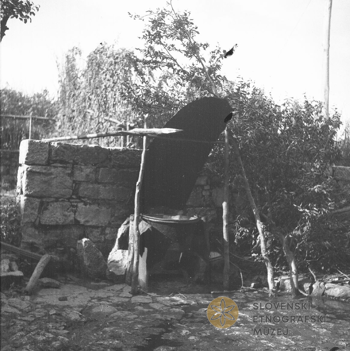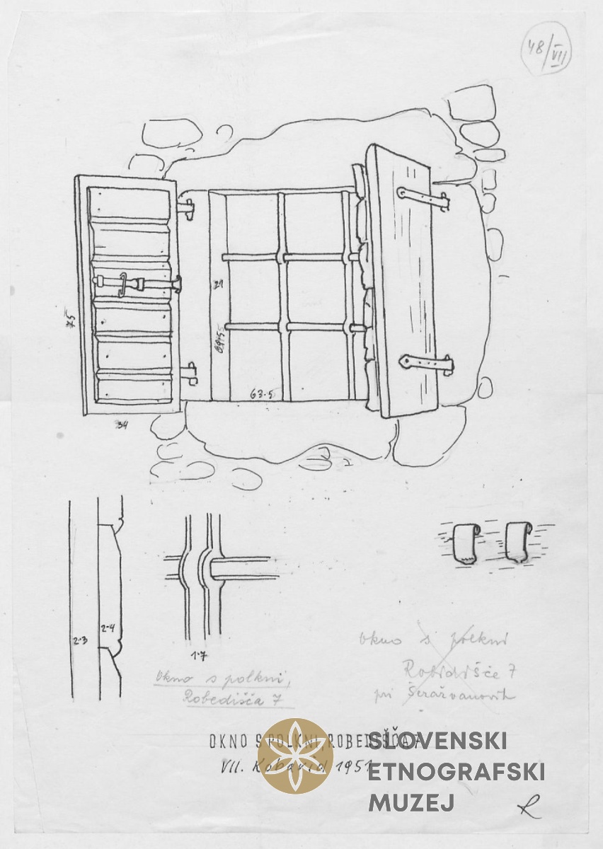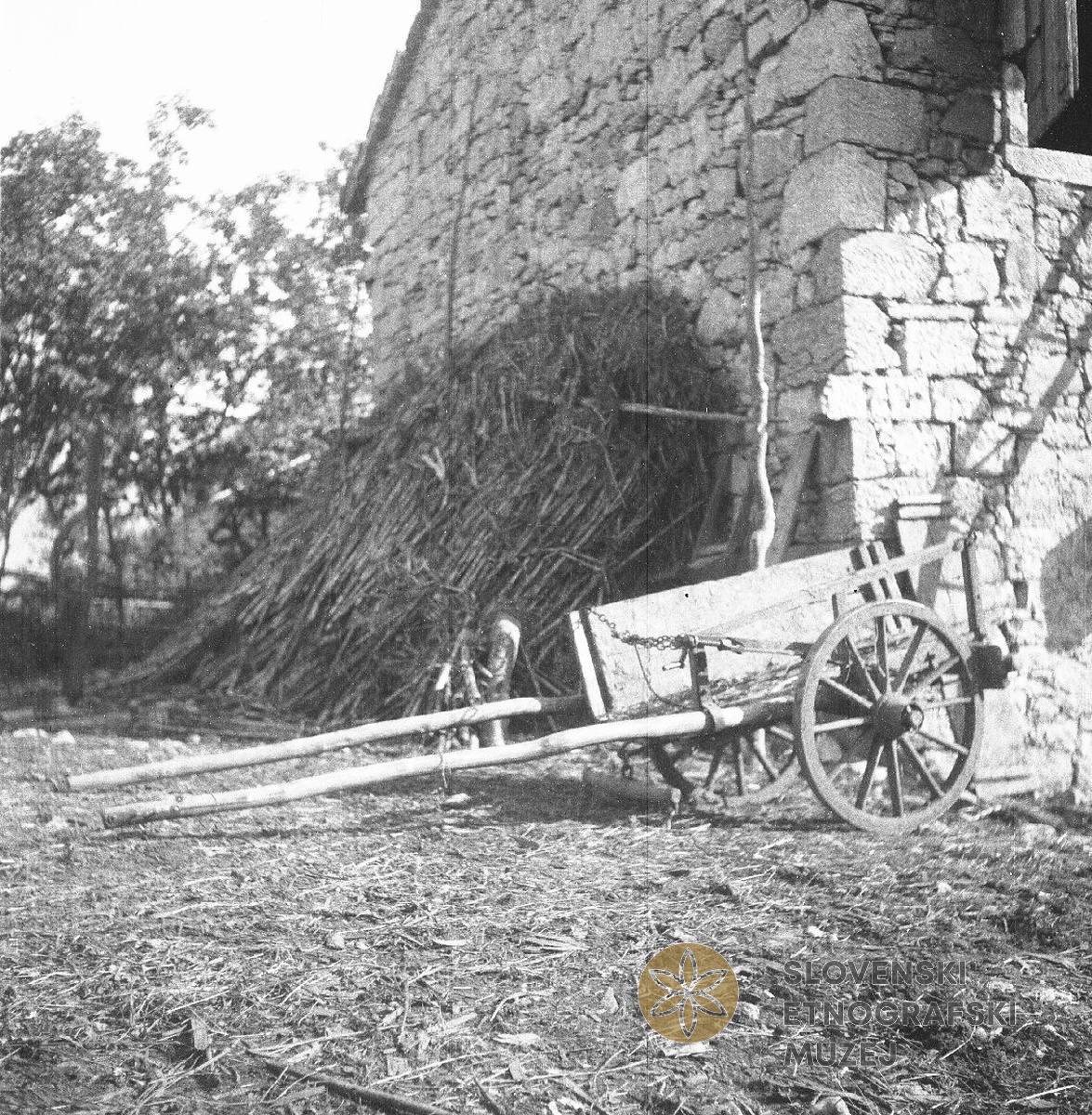 Gnojnik (spodaj) in linda za seno (zgoraj). Teren 7 - Kobarid, 3.7. - 3.8.1951.