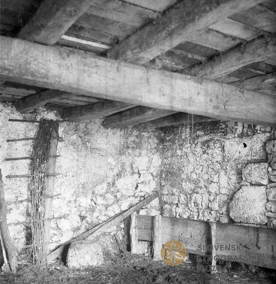 Robidišče št. 31, pri Sužiknih. Hlevi, zgoraj klobat (senik). Teren 7 - Kobarid, 3.7. - 3.8.1951.