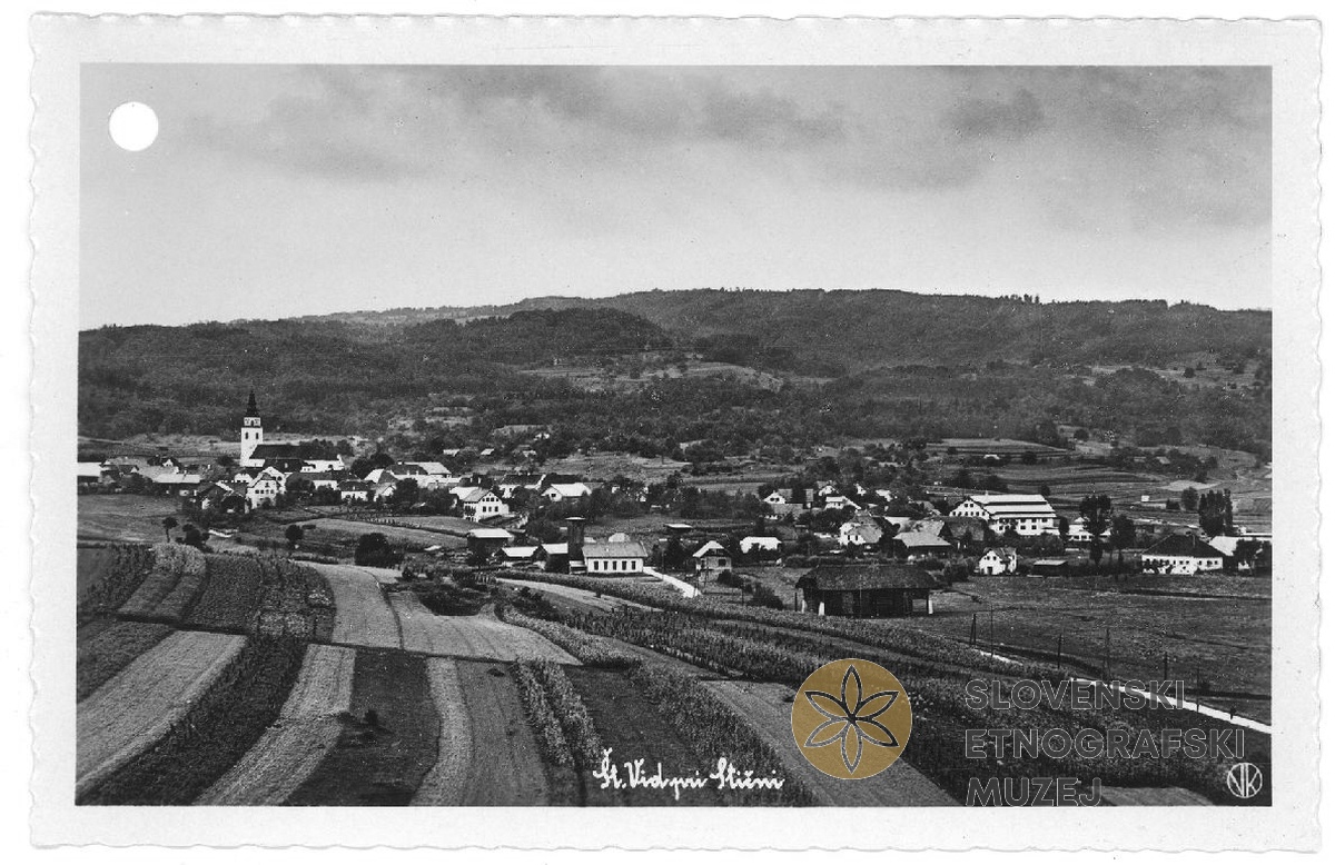 Šentvid pri Stični. Na razglednici Trgovina V. Slivnik. Med leti 1928 in 1947.