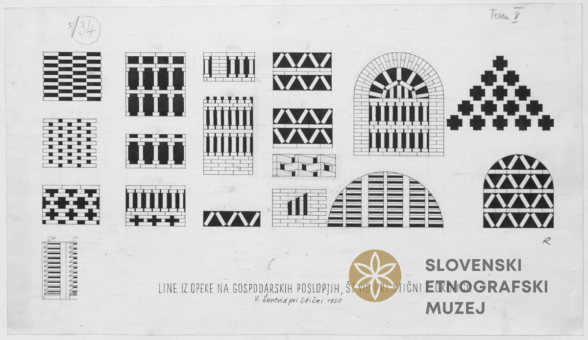 Line iz opeke na gospodarskih poslopjih (18 različic). Šentvid pri Stični z okolico.