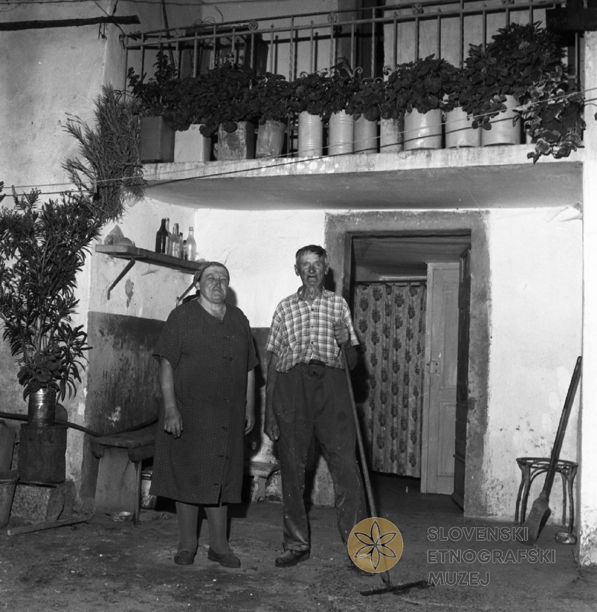 Pred hišo v Sežani, Jože Štok, Semnjiška 10. Teren 25 - Kraška hiša (1969).