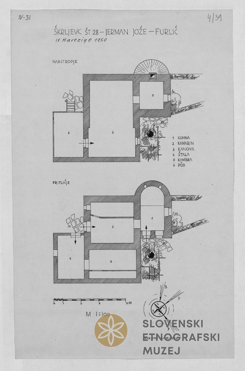 Štala (hlev), krita s slamo, prvotno stanovanjska hiša, Škrljevc 31, Tomaž Jerman. Teren 4 -...