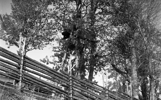 Prašiča "popravljajo" - režejo (sosedska pomoč), Šmihel 14, Goličnik Franc. Teren I -...
