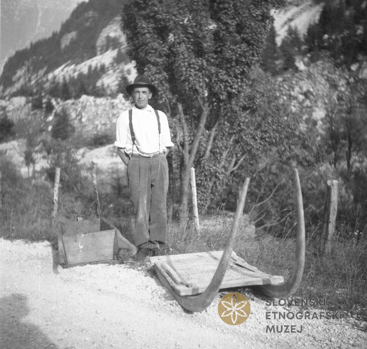Šlite (sani) "kamnarce" za kamne vozit, Soča 87, pri Štrolu. Teren 8 - Trenta - Bovec, 1...