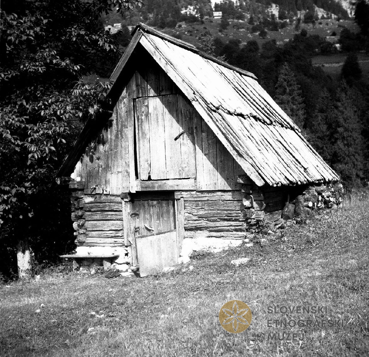 Hlev (nad vrati letnica 1833) v Lomu - Vrsnik 77. Teren 8 - Trenta - Bovec, 1.7. - 31.7.1952.