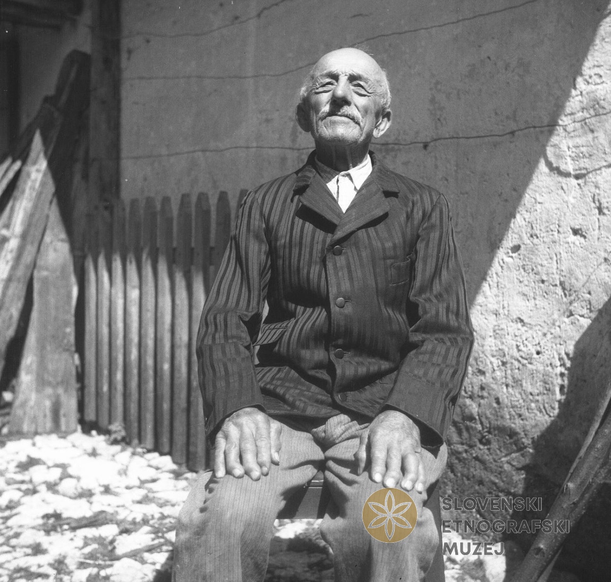 Stari Fulc iz Soče s kaincem za pasom. Teren 8 - Trenta - Bovec, 1.7. - 31.7.1952.