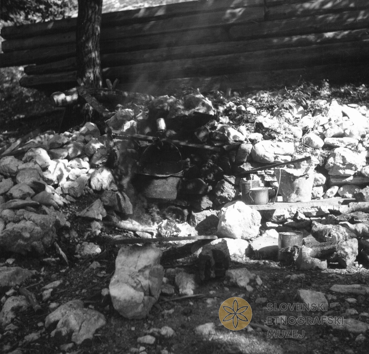 Ognjišče s kotlom (na prostem) za prašiče. Soča - Lemovje 39. Teren 8 - Trenta - Bovec, 1.7. - 31.7...