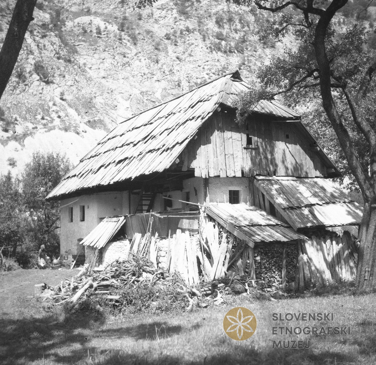 Pogled na hišo z žago v Zg. Soči 51, pri Mlinarji, Franc Kavs. Teren 8 - Trenta - Bovec, 1.7. - 31...