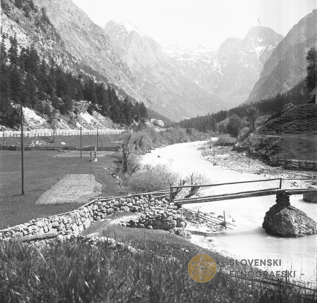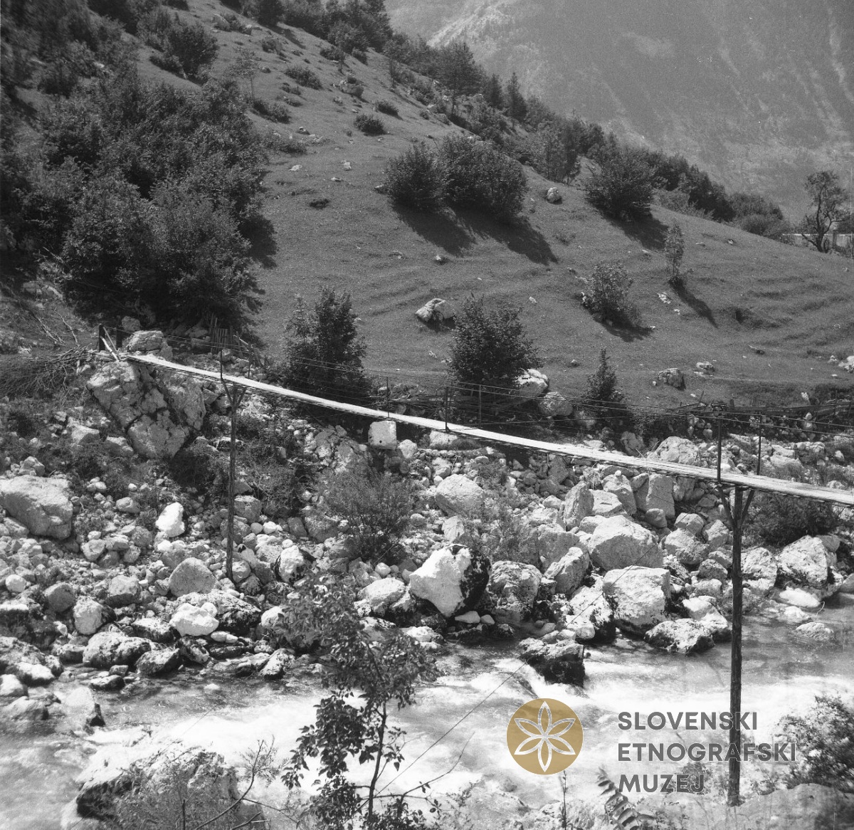 Značilna brv čez Sočo. Teren 8 - Trenta - Bovec, 1.7. - 31.7.1952.