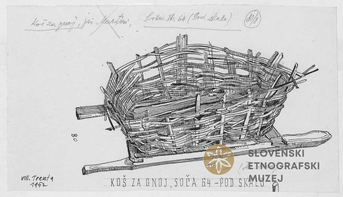S takim košem nosijo gnoj na lehe, Soča - Pod Vršičem. Teren 8 - Trenta - Bovec, 1.7. - 31.7.1952.
