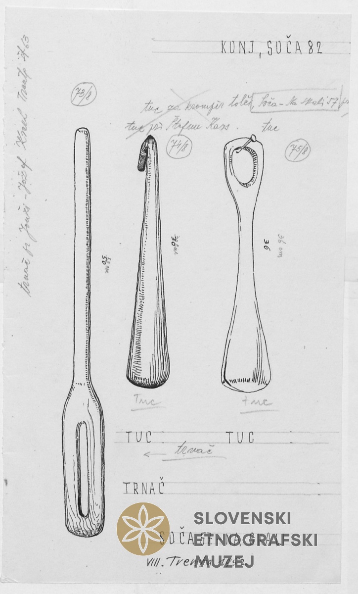 Bat (tuc) za krompir tolč. Lastnik Štefan Kavs, pri Maticu, Soča 57, Na Skali.